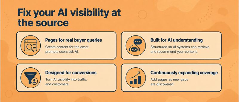 If your website says "we help teams work better together" and your blog posts are full of curiosity-gap headlines and vague value propositions, the AI has very little to work with. It may mention you briefly, describe you inaccurately, or skip you entirely in favor of a competitor whose content is clearer.